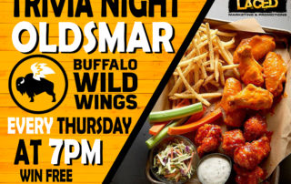 Street Laced Marketing has teamed up with Buffalo Wild Wings in Oldsmar, Florida to powered their NEW Trivia Night! All Ages Welcome! Come play for FREE! You can WIN Appetizer & Gift Cards! EVERY Thursday Night for #ThursdayNightTrivia! $30 BWW Gift Card – 1st Place Winner $20 BWW Gift Card – 2nd Place Winner $10 BWW Gift Card – 3rd